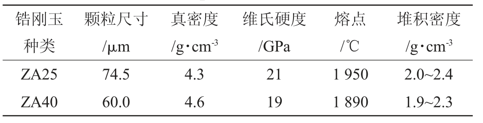Tab.2 Physical properties of common ZTA ceramic particles[5]